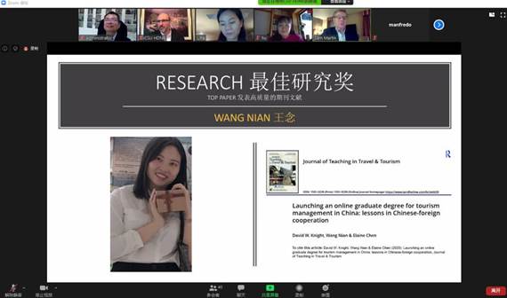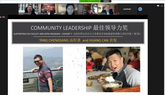 随后CSU人文自然系主任Mike Manfredo和CCNU城市与环境科学学院教授、中国旅游研究院武汉分院院长胡静先后做开场致辞,表达以线上方式和两岸师生会面的喜悦,并对在场所有结束MTM课业即将迈向崭新人生阶段的毕业生深切寄语和由衷祝福。