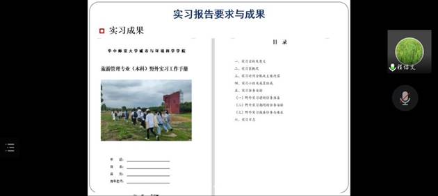 会议第五项,三个实习小组的同学分别聚焦宜昌、荆门、荆州3个实习目的地城市,结合野外实习调研经历、成果和感受进行实习总结汇报。