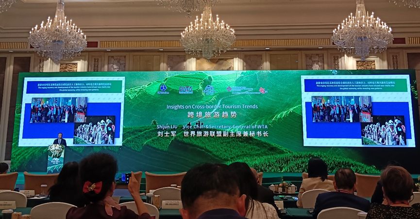 大会在桂林香格里拉大酒店举行,由桂林市人民政府和广西壮族自治区文化和旅游厅承办,香港理工大学协办。广西壮族自治区人大常委会副主任、桂林市委书记周家斌,广西壮族自治区人民政府副主席胡帆,联合国世界旅游组织亚太部主任黄海国,亚太旅游协会首席执行官努尔·艾哈迈德·哈米德等出席开幕式并致辞。在主旨演讲环节,柬埔寨旅游部副部长霍菲瑞克、泰国旅游与体育部副部长扎卡鹏•荡苏提塔目、世界旅游联盟副主席兼秘书长刘士军等业界领袖发表了精彩演讲。他们聚焦旅游业的创新、挑战和机遇,探讨了如何通过数字化转型、传统与创新融合等方式推动旅游业的可持续发展。刘士军在其主旨演讲《跨境旅游的趋势与应变》中,详细介绍了当前国内外旅游的基本情况、特点及变化,并分享了国际旅游的先进做法。