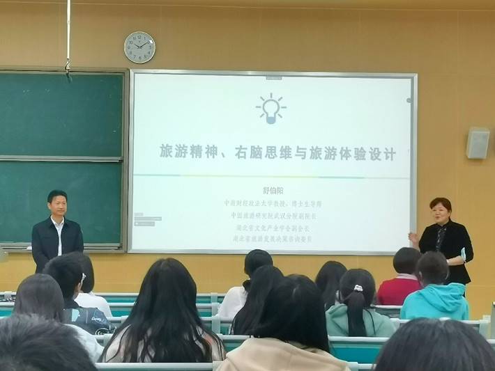 (通讯员:汤晨、王晓芳)2022年10月25日上午,中南财经政法大学工商管理学院教授舒伯阳教授应邀在我校八号楼南楼105教室为2022级旅游管理专业新生做题为“旅游精神、右脑思维与旅游体验设计”的学术讲座,讲座由我院胡静院长主持,来自分院的多名老师及其他学生到场聆听、学习。