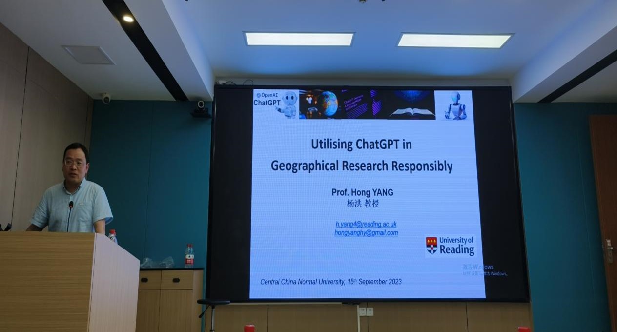 9月15日下午,英国皇家地理学会会士、英国高等教育学会资深会士、英国雷丁大学杨洪教授做客武汉分院学术前沿讲座,做了题为“Utilising ChatGPT in Geographical Research Responsibly”(ChatGPT在地理研究中的应用)的演讲。武汉分院龚箭副院长主持讲座。