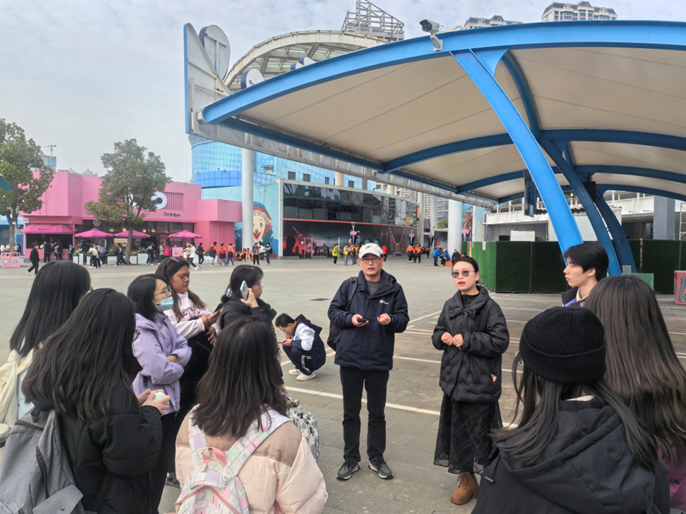 座谈会后,师生们开始对武汉欢乐谷园区进行实地考察。下午14:40,师生们集合,熊经理对武汉欢乐谷的实习岗位进行了全面的讲解,并欢迎同学们下学期到欢乐谷进行专业实习。随后,实习队伍返程。