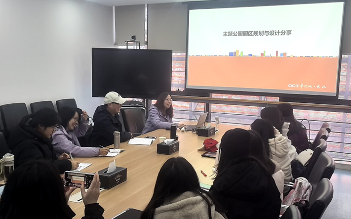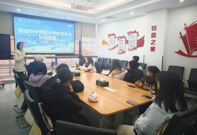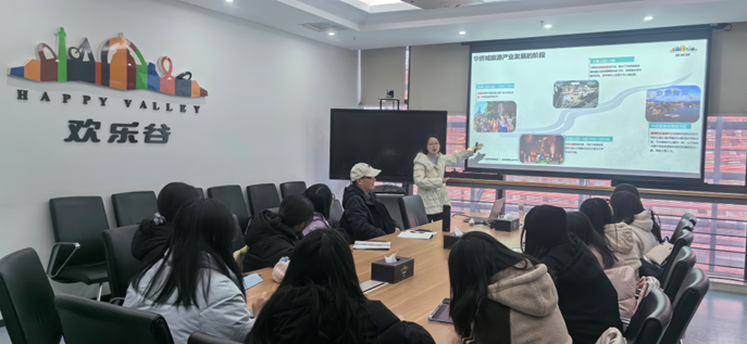 上午10:30,实习师生抵达武汉欢乐谷,受到了欢乐谷熊经理的热情接待。在公司会议室,欢乐谷企业部、市场营销部、人力资源部的负责人与师生们进行了座谈交流,她们分别介绍了欢乐谷的企业背景与企业文化、节庆产品创新与营销策划、园区规划与设计,给师生们全景式呈现了欢乐谷的规划设计与运营管理情况,尤其是结合运营过程中的实际感悟,介绍细致,干货满满。
