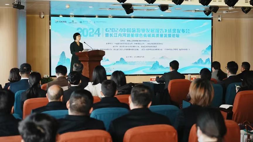 2024年12月6日,《2024中国旅游业发展报告》成果发布会暨长江内河游船绿色低碳高质量发展论坛在湖北宜昌长江三峡1号游轮上成功举办。本次活动由湖北三峡旅游集团股份有限公司主办,宜昌交运长江游轮有限公司、宜昌富力皇冠假日酒店承办,湖北区域旅游研究院、湖北旅游研究院(湖北省高校人文社科重点研究基地)、武汉市旅游协会旅游教育分会、《华中师范大学学报(自然科学版)》协办。我院应邀在此次活动上发布了《2024中国旅游业发展报告》(以下简称《报告》)。