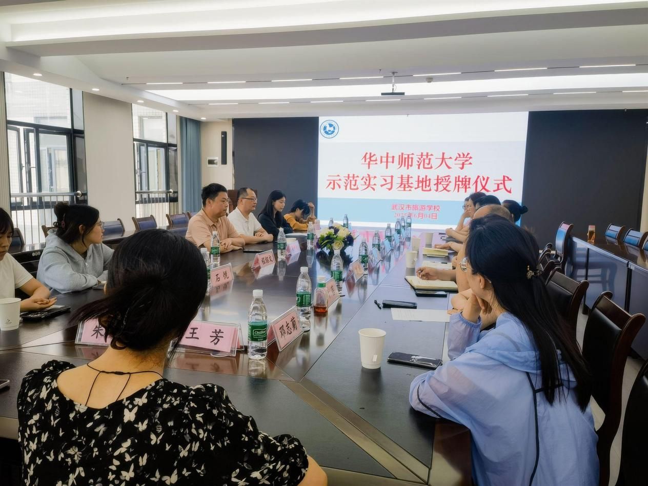(通讯员:邹佳云)6月4日,华中师范大学示范实习基地授牌仪式在武汉市旅游学校行政楼六楼会议室成功举行。参加此次活动的领导和老师有,华中师范大学城市与环境科学学院党委副书记李志雄、旅游管理系主任张祥、武汉市旅游学校实习基地负责人程绍文、武汉市旅游学校校长蔡沁云、副校长付贝、教务处主任徐紫燕以及刘祥、雷鸣、刘春英、叶蓓、邓志菊、王芳、朱轶等领导和老师,在武汉市旅游学校实习的旅游管理系本科生邹佳云、闫若涵、赵蕊、石悦也参加了此次活动。