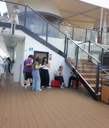 上午七点半,同学们登上“长江一号”新能源纯电动游轮。该游轮采用先进环保技术,兼具高效性与可持续性。在游轮行进过程中,讲解员系统介绍了长江一号游轮的设施及其技术特点。同学们不仅近距离观摩了葛洲坝船闸的运作流程,还以小组为单位对船上游客展开问卷调查。问卷内容涵盖两大维度:一是游客对游轮上提供的产品及服务的体验质量及评价,以及对本旅游产品周边配套服务的满意度评价,包括交通便利性、经济性、景观吸引力及服务质量等;二是游轮游客行为与偏好分析,涉及游客参与游轮旅游的动机、信息获取渠道、旅游决策过程、旅游消费行为及体验反馈等。