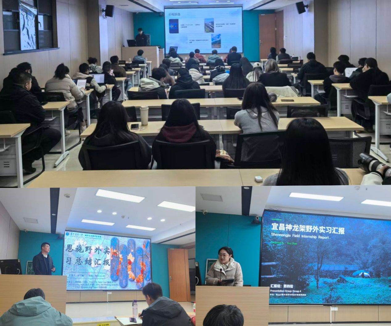 实习结束后,各线路带队老师、部分MTM与MPPM硕士研究生导师及全体实习同学于11月20日在学院116会议室进行实习总结。一共9个实习小组结合PPT、视频与文稿等形式,多样化展示了实习期间的所见所闻与所学所感,充分汇报了实习地的旅游发展现状,多角度提出了在实习过程发现的问题,并提出了针对性、合理化的建议。