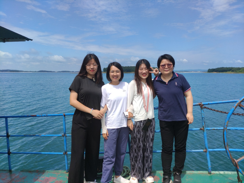 座谈结束后,同学们登上了楚天舒15号游船,到达景区核心景点之一的湖心岛进行实地考察。在40分钟左右的航程中,水天相接、碧波荡漾的漳河水库让同学们大受震撼,纷纷走出船舱记录下这份美景,也定格了同学们青春洋溢的面容。