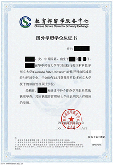 按照华中师范大学和美国科罗拉多州立大学共同制定的培养标准,修满35学分的学生,可获得由美国科罗拉多州立大学颁发的公园与保护地管理硕士学位证书。该学位证书可在教育部留学服务中心官网进行学历学位认证。