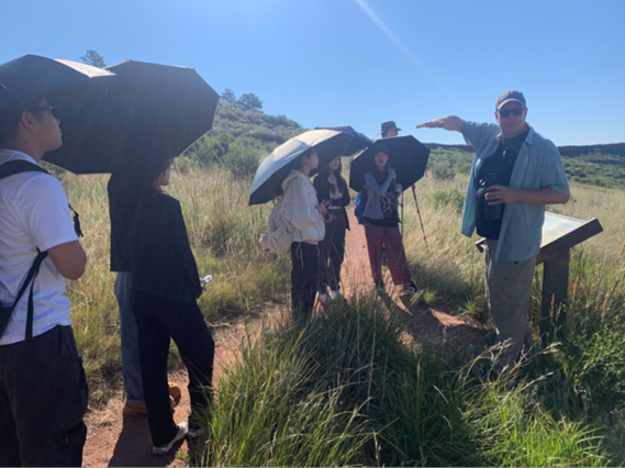 野外实习实践的第一站旨在了解柯林斯堡外围自然保护区的相关建设规划和管理措施。在美国科罗拉多州立大学的郭田老师和华中师范大学的冯娟老师带领下,实践队进入了柯林斯堡城市周边的自然保护区,探访了该区域内的土拨鼠居民。随后,两位老师为同学们介绍了旅游学中的游憩机会图谱以及人文地理学中的逆城市化和绅士化现象。